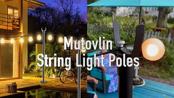 Amazon Com Mutovlin 2 Pack String Light Poles 10 Ft Light Poles For Outside String Lights Outdoor Light Poles With Fork Metal Poles Stand For Patio Deck Backyard Tools Home Improvement